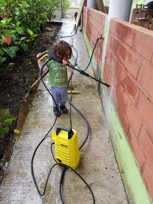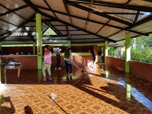 Wir haben ausser dem Hausbau noch ein neues Projekt gestartet. Lastenia und Enrique (ein Freund von uns) haben ein Restaurant mit Swimmingpool und Spa gemietet. Die Miete beträgt pro Monat nur 200$ aber natürlich hat es einen Hacken. Die ganze Infrastruktur ist in einem desaströsen Zustand. Daher helfen wir jetzt mit, alles auf Vordermann zu bringen. Inti hilft jeden Tag aktiv mit. Uns wird also nicht langweilig hier.