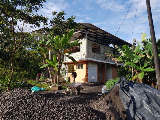 Ja, Gelassenheit wird hier viel benötigt. Vor allem wenn hier ein Haus gebaut wird. Ihr möchtet sicher wissen wie es um unseren Hausbau steht? Wie ihr euch wohl denken könnt, gab es vieles unvorgesehenes, vieles das schepps oder schief gelaufen ist und von den Kosten sprechen wir lieber garnicht… Ich habe mich immer gefragt, warum es so viele halbfertige Häuser in Ecuador gibt, jetzt steht auf unserem Land selbet so eins… Wir können euch aber mit Freude sagen, dass wir wahrscheinlich ab Neujahr im EG einziehen können. Durch vieles unvorhergesehenes haben wir unser Budget für das Haus schon gesprengt und somit können wir leider das OG nicht fertigstellen. Zum Glück gibt es die Gelassenheit und hier ist es wie gesagt ganz normal, dass halt plötzlich das Geld ausgeht und somit der Hausbau gestoppt wird, bis wieder etwas angespart ist.