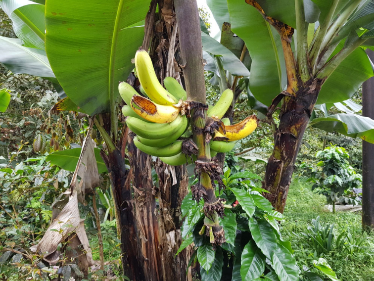 Darum müssen die Bananaen grün gepflückt werden. Die Vögel sind sonst schneller…