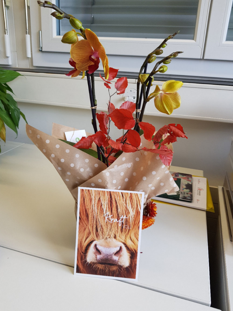 Auch alle weiteren Begegnungen und Willkommensgrüsse und Überraschungen waren wunderschön und wir versanken in tiefer Dankbarkeit. Dankbar für so viele unzählige liebe Menschen in unserem Leben. Dankbar für all die Liebe, Hilfe und Unterstützung, welche wir erfahren durften. Dankbar, wieder in der Schweiz zu sein und immer noch eine Arbeitsstelle zu haben. Leo und ich durften zu unseren Arbeitgebern zurück. Absolut keine Selbstverständlichkeit. Leo hat gleich nach der Quarantäne am 14. September wieder als Zimmermann gestartet und ich hatte am Mittwoch 23.9 meinen ersten Halbtag bei der ilu AG. Über 10 Monate haben unsere Chefs auf uns gewartet und die Stelle frei behalten. In welchem Land ist dies sonst noch möglich? Ausserdem wurde ich mit Blumen und einem grosszügigen Geburtsgeschenk für Amaru im Büro überrascht. Ich kann nicht genug betonen, wie viel Glück wir haben und wie dankbar wir sind.