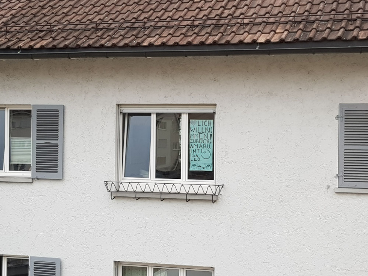 Kurz aus dem Fenster geschaut, erblickten wir ein grosses ans Fenster geklebte Willkommensplakat unserer Nachbarn. Auch diese Überraschung war geglückt. Vielen Dank liebe Anna und lieber Stefan.