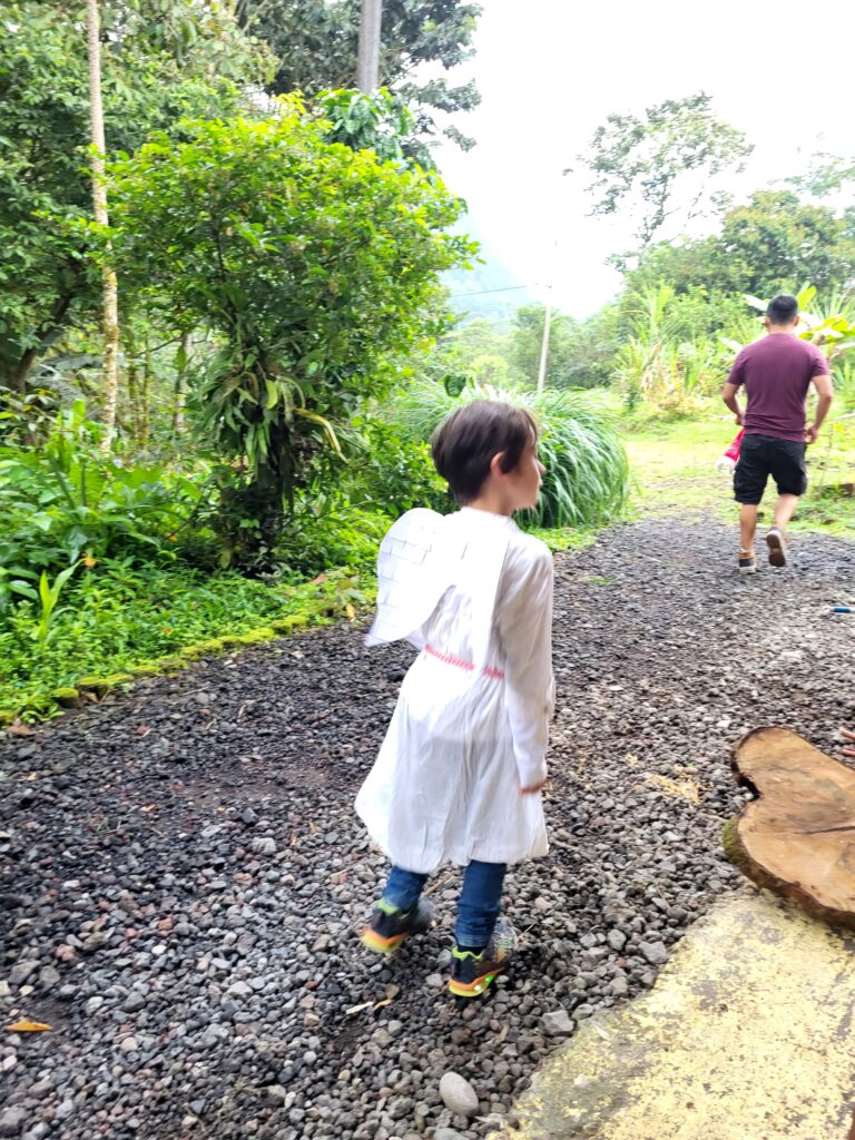 Auch, wenn Weihnachten schon lange vorbei ist, wollte ich euch diese Fotos nicht vorenthalten. Leider fand ich mit all dem Homeschooling Trubel keine Zeit, euch mit all unseren Abenteuern auf dem Laufenden zu halten. Auch haben wir realisiert, dass der Schulunterricht für Inti sehr überfordernd war und bei uns in der Familie viel Druck und Unmut erzeugte. Daher haben wir uns entschlossen, ihn wieder aus der Schule zu nehmen. Die Schule der Kinder beginnt um 7 Uhr am Morgen. Wenn man nur um 7.01 Uhr ankommt, ist die Türe schon geschlossen und der Unterricht für den ganzen Tag vorbei. Das ist eine Sicherheitsmassnahme des Dorfes. Auch muss mindestens ein Elternteil das Kind immer in die Schule bringen und von dort wieder abholen. Der Unterricht endet um 12 Uhr. Wenn die Kinder mit den Aufgaben noch nicht fertig sind, kann es schon 12.30 Uhr werden. Für 5 bis 6-Jährige Kinder finde ich das schon extrem früh und lange. Auch mit der Kommunikation der Lehrerin kamen wir nicht zurecht. Sie kann, wenn sie will, ein WhatsApp senden und um 10 Uhr oder 11.30Uhr schon sagen, dass die Kinder abholbereit sind. Das heisst also, dass immer jemand «abrufbereit» sein muss. An so einem dieser Tage war ich zu Fuss unterwegs als mich Carla, die Nachbarin, mit ihrem Motorrad aufgabelte. Mitsamt unserem Hund Oliver und Amaru fuhren wir also gemeinsam auf ihrem Motorrad zur Schule um die Kinder abzuholen. Was für ein Bild :).